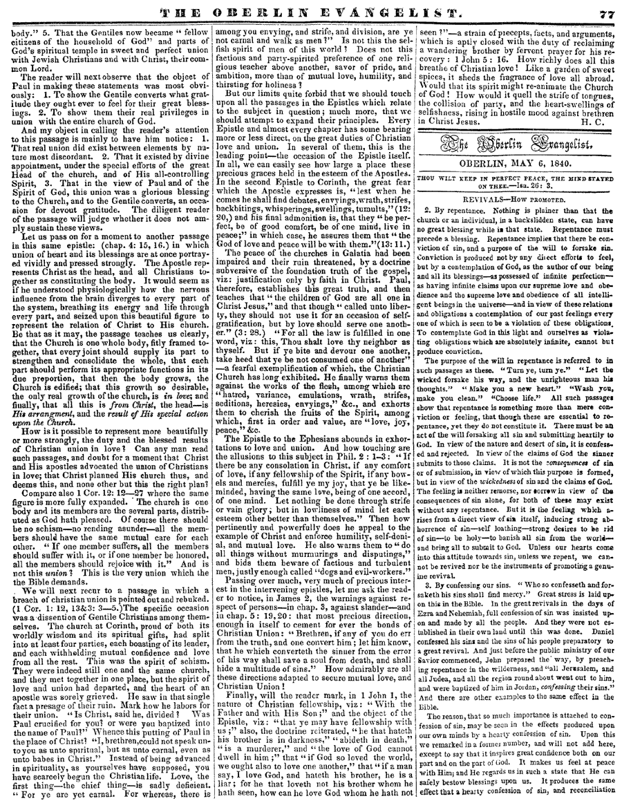 OBERLIN EVANGELIST
