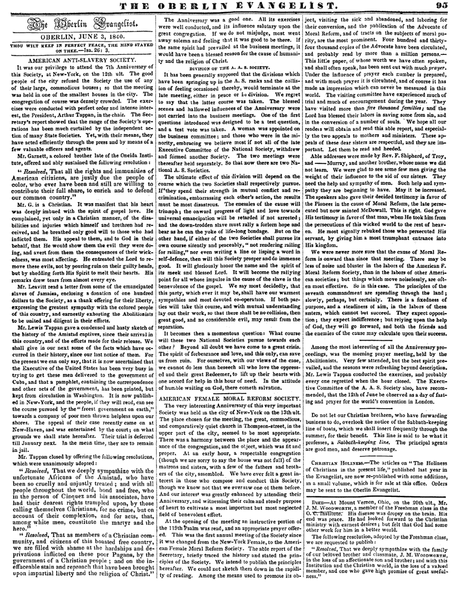 OBERLIN EVANGELIST