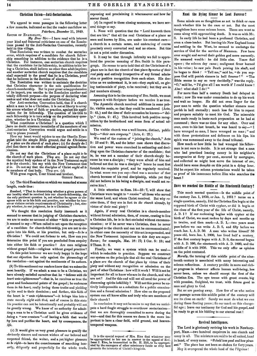 OBERLIN EVANGELIST