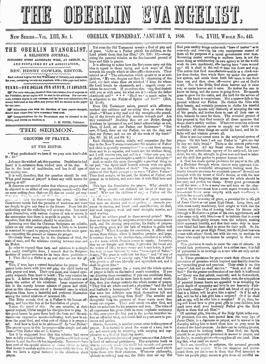 OBERLIN EVANGELIST 1856